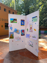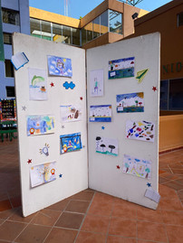 Uno de los momentos más especiales fue la exposición de algunos dibujos creados por niñas y niños que participaron en nuestros concursos de dibujo infantil hospitalario en años anteriores. Ver esas obras salir por fin de los hospitales y llegar a más personas nos conmovió profundamente. Fueron dibujos que nacieron en contextos de lucha, valentía y esperanza, y que ahora pudieron hablarle al mundo desde un espacio nuevo.